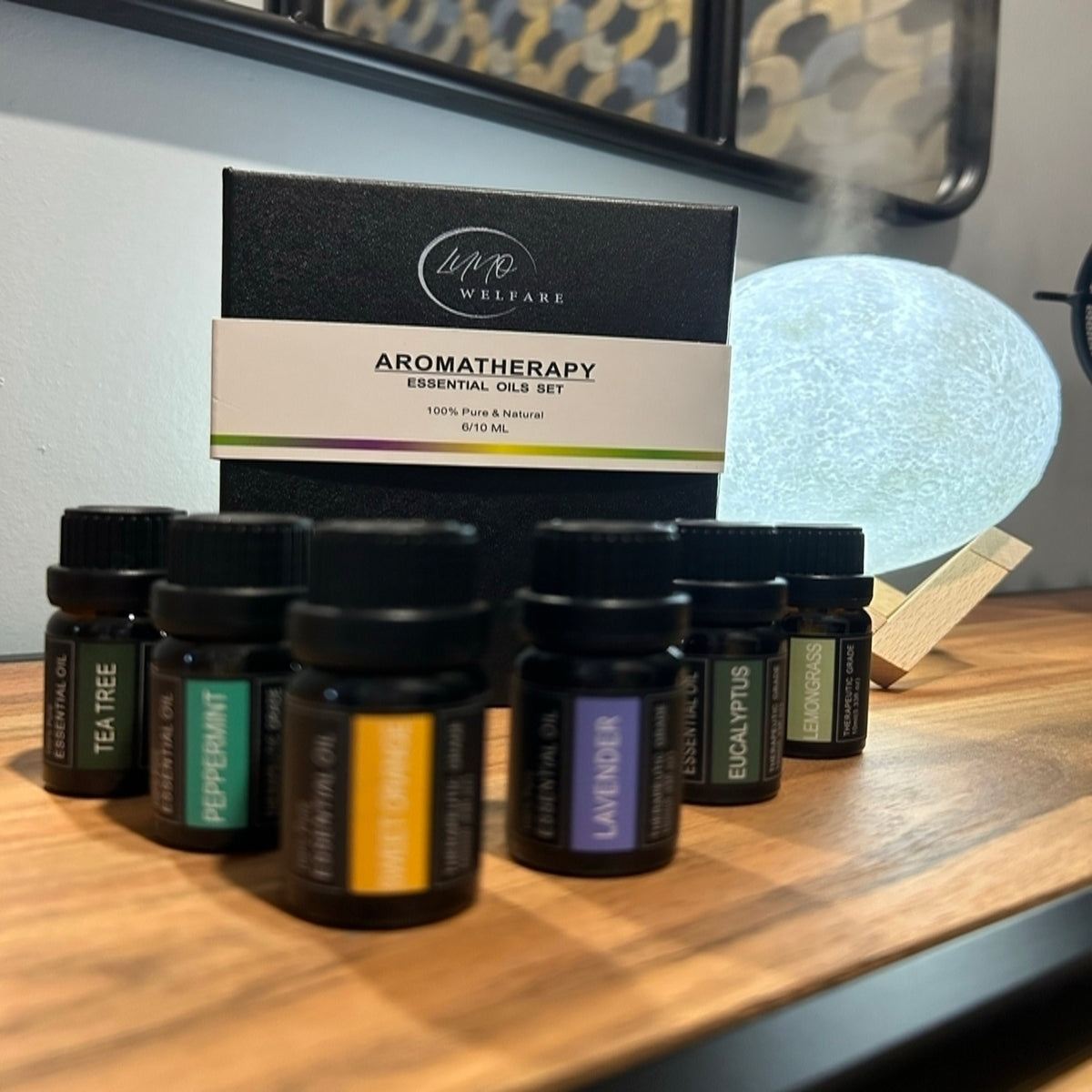 Lot Coffret Aromathérapie Premium – Diffuseur 880 ml & 6 Huiles Essentielles Pures