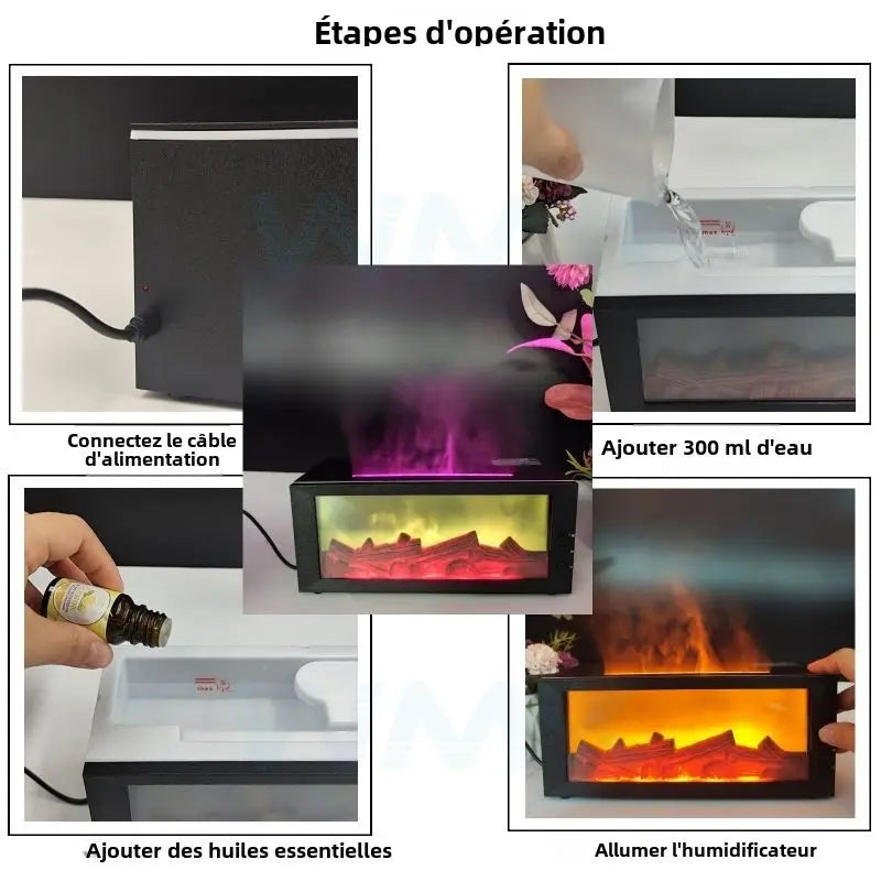 Diffuseur flamme 300 ml – ambiance cheminée & télécommande