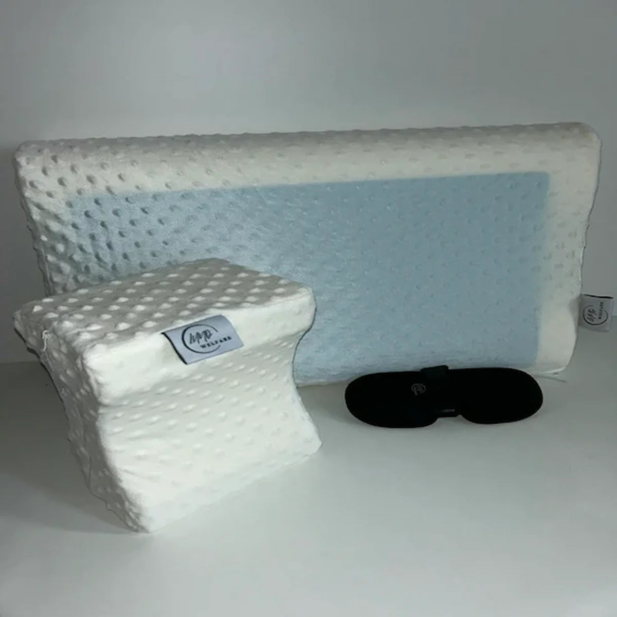 Lot Nuit Confort – Oreiller Cervical, Coussin Jambes & Masque 3D | Sommeil Réparateur LUNO